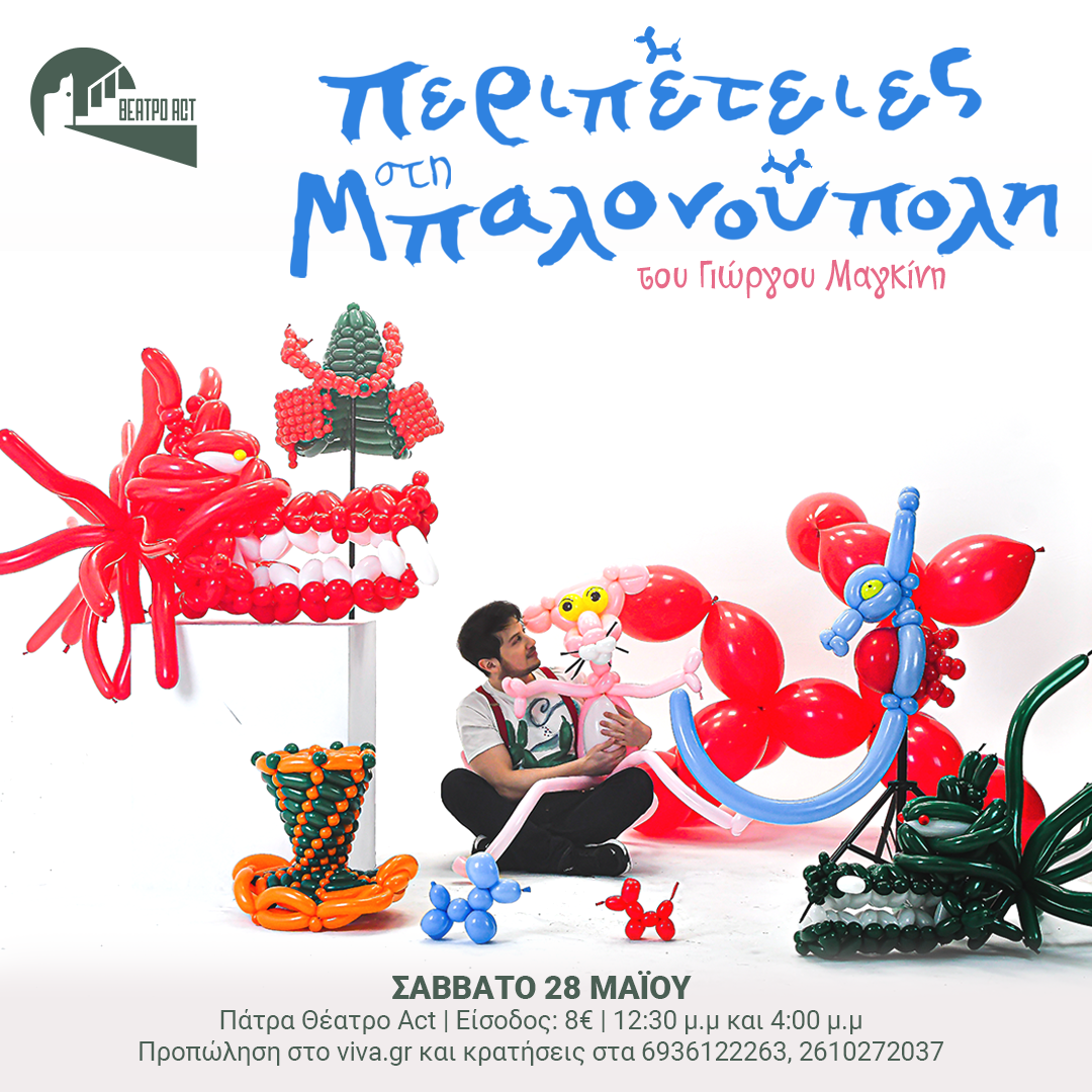Το θέατρο act παρουσιάζει τις «Περιπέτειες στη μπαλονούπολη» – the balloon show, μια εξαιρετικά διασκεδαστική παράσταση για όλη την οικογένεια! Μετά τις sold out παραστάσεις του Μάϊου, η παράσταση επιστρέφει στην Πάτρα την Κυριακή 16 Οκτωβρίου στις 12.30 και στις 16.00.